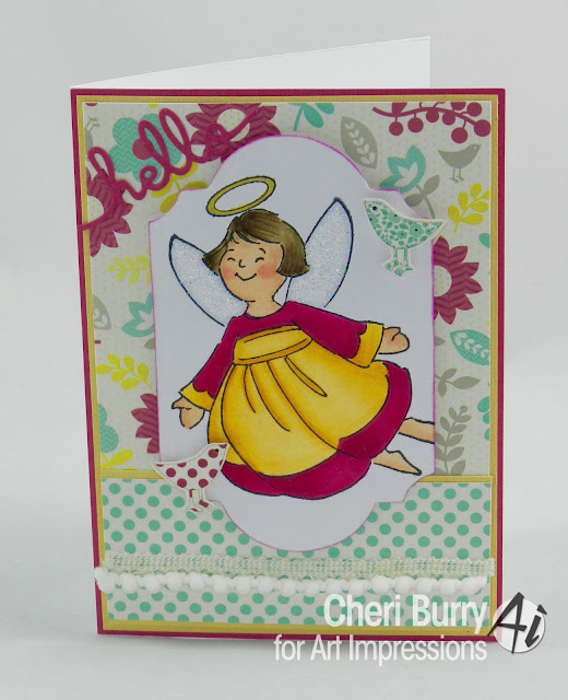 Today is the second week of the new Challenge over at Art Impressions called it's Christmas in July They want to see how you can use a Christmas stamp in a non Christmas way. Right away I knew I would use my Hope Angel stamp but color her in non Christmas colors!