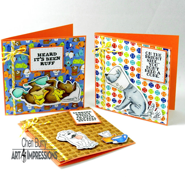 I had so much fun yesterday using these stamps for the Ai Launch of the Funny Farm images. I just couldn't resist..... I had to play with the "Doggy Kisses" set some more! I decided to create these cute 3 1/2 x3 1/2 " square cards that you could use as little gift cards to add with a little get well gift or flowers.