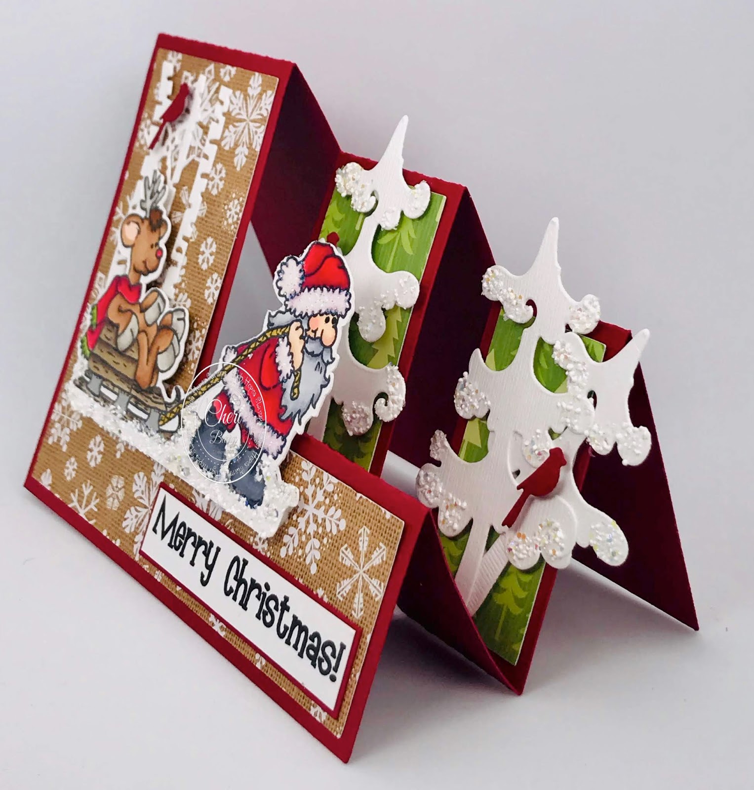 I haven't made a side step card in forever! When I saw this adorable image called "Reindeer Games" from High Hopes Rubber Stamps, I knew it would be perfect for a step card! Way to go Rudolph....finally Santa is pulling you for a change!